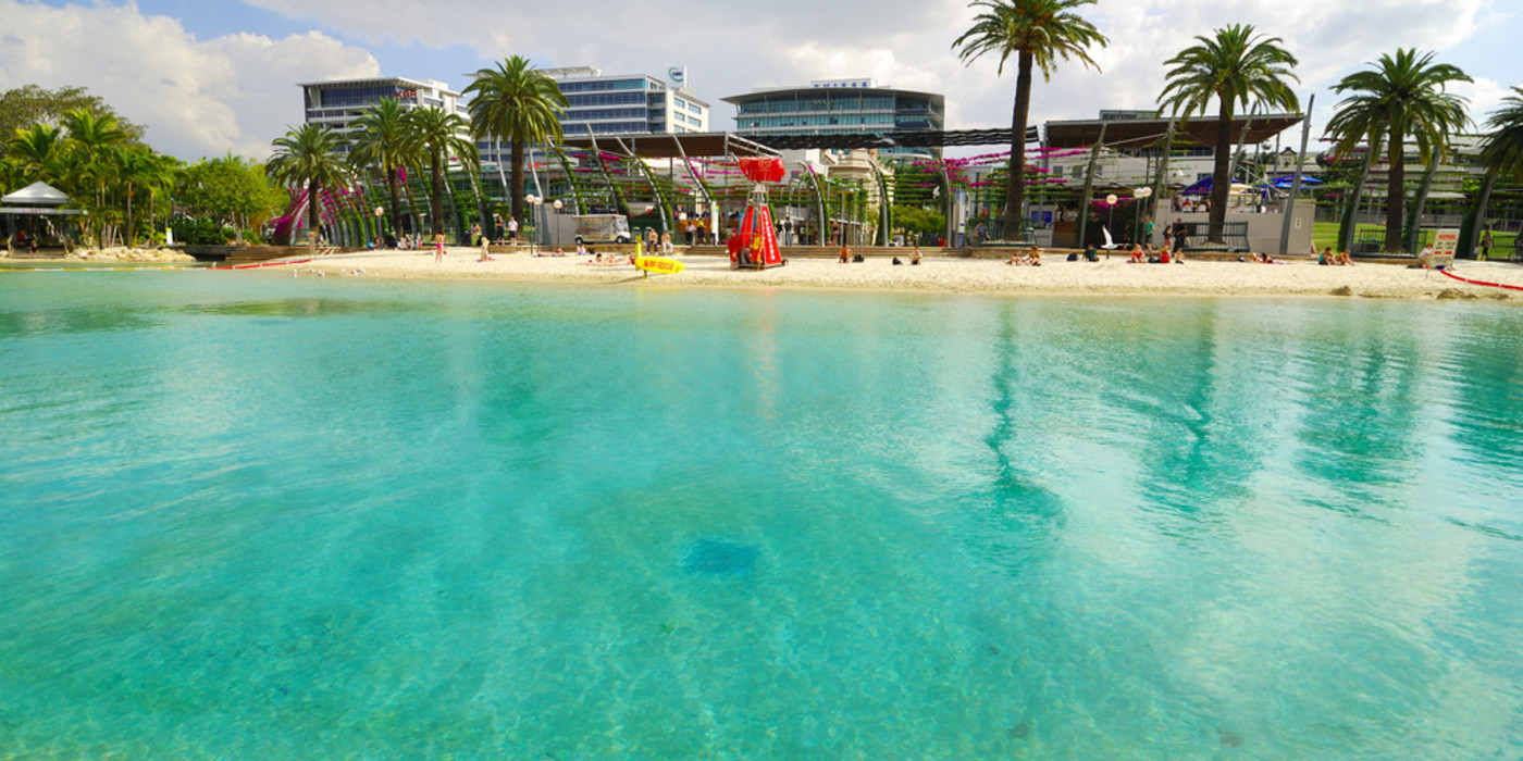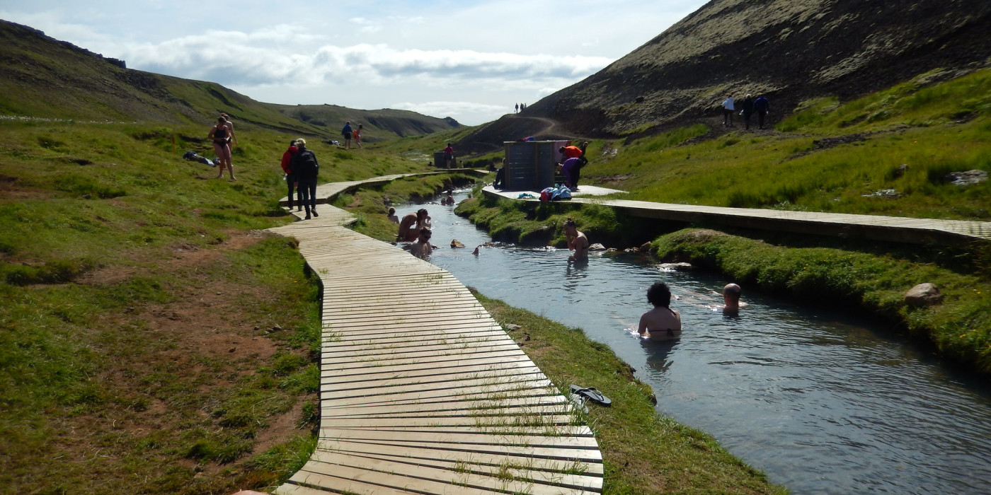 The weather is warm, few clouds, lots of sunshine, perfect for swimming and walking.